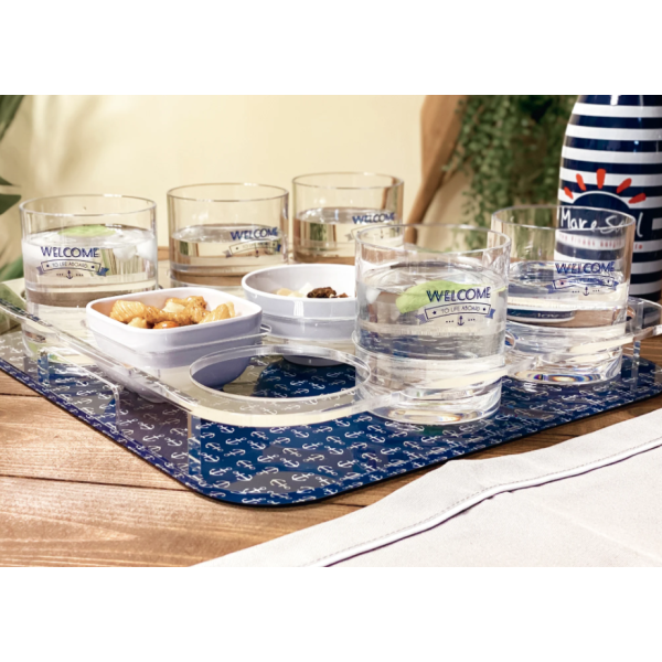 Морският дизайн на този комплект го прави лесен за комбиниране с всякакви меламинови прибори за хранене и различни модели нечупливи чаши от Marine Business.